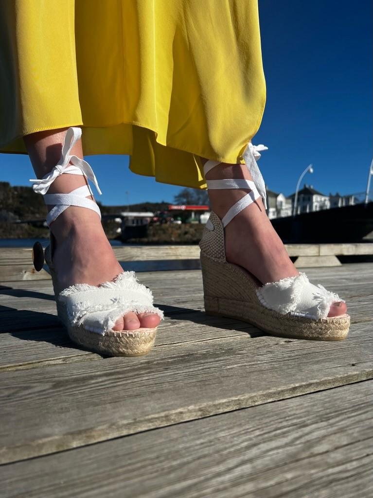 Lekker sandal med kilehæl og snøring rundt ankel.