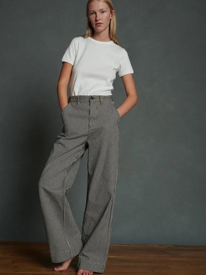 – Rett, tilpasset snitt – Korte ermer – Rund hals – brodert “soeur”-logo på brystet – veldig finstrikket jersey-stoff i økologisk bomull