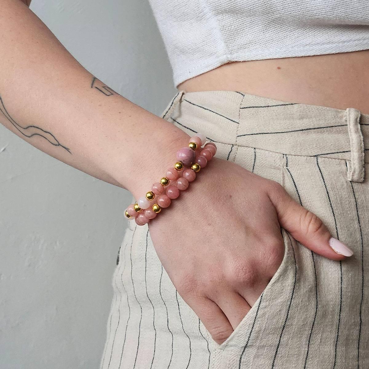 Dette er en svært liten produksjon så du vil neppe treffe noen som har make. Hvis du oppgir målet rundt armleddet ditt i kommentarfeltet så får du et som passer. Sett armbåndet sammen med et enklere i samme farger så har du en flott kombinasjon. Smykket kommer med elastisk bånd som gjør det lett å ta av og på, og med en liten kanvas pose med logo.