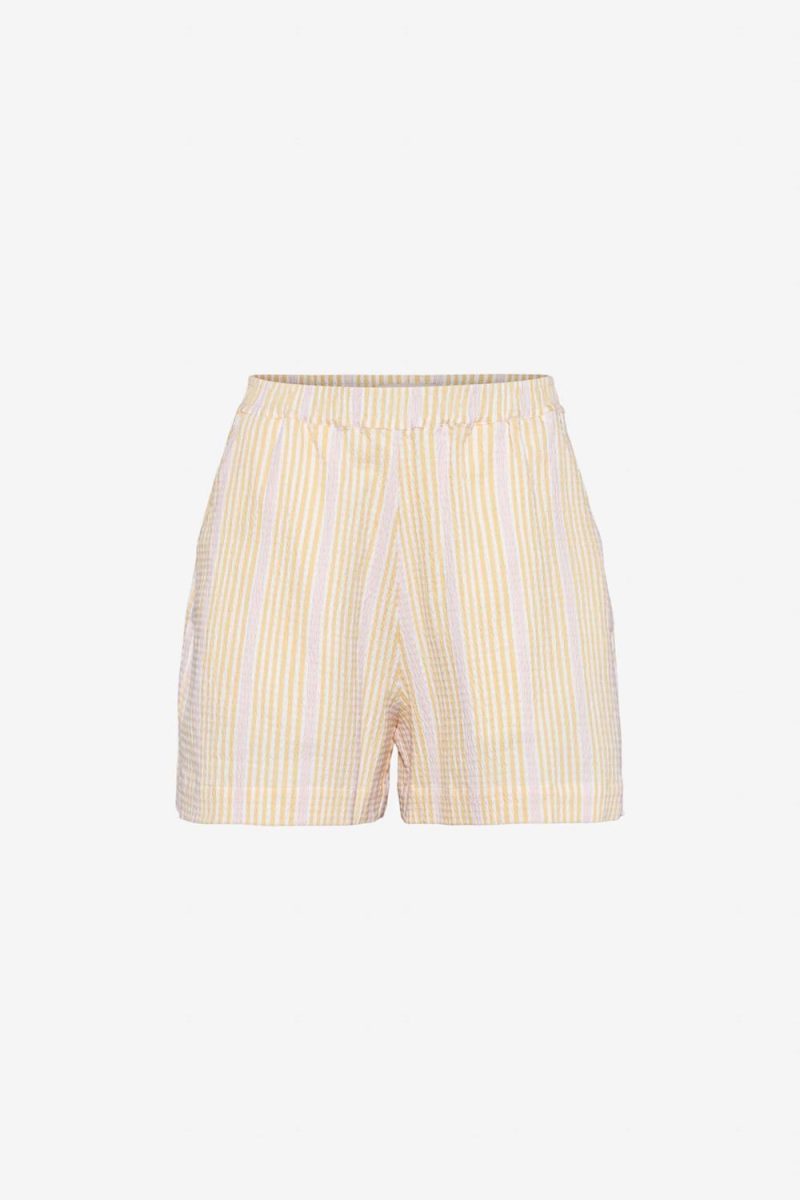 Bianca Crepe Shorts fra Camilla Pihl er den ultimate avslappede sommerstilen, laget av et nytt seersucker-stoff. De er designet for en oversized passform med en avslappet silhuett, og har en elastisk linning og utsvingte ben for uanstrengt komfort. Kombiner dem med den matchende Bibi Crepe-skjorten for et komplett utseende.