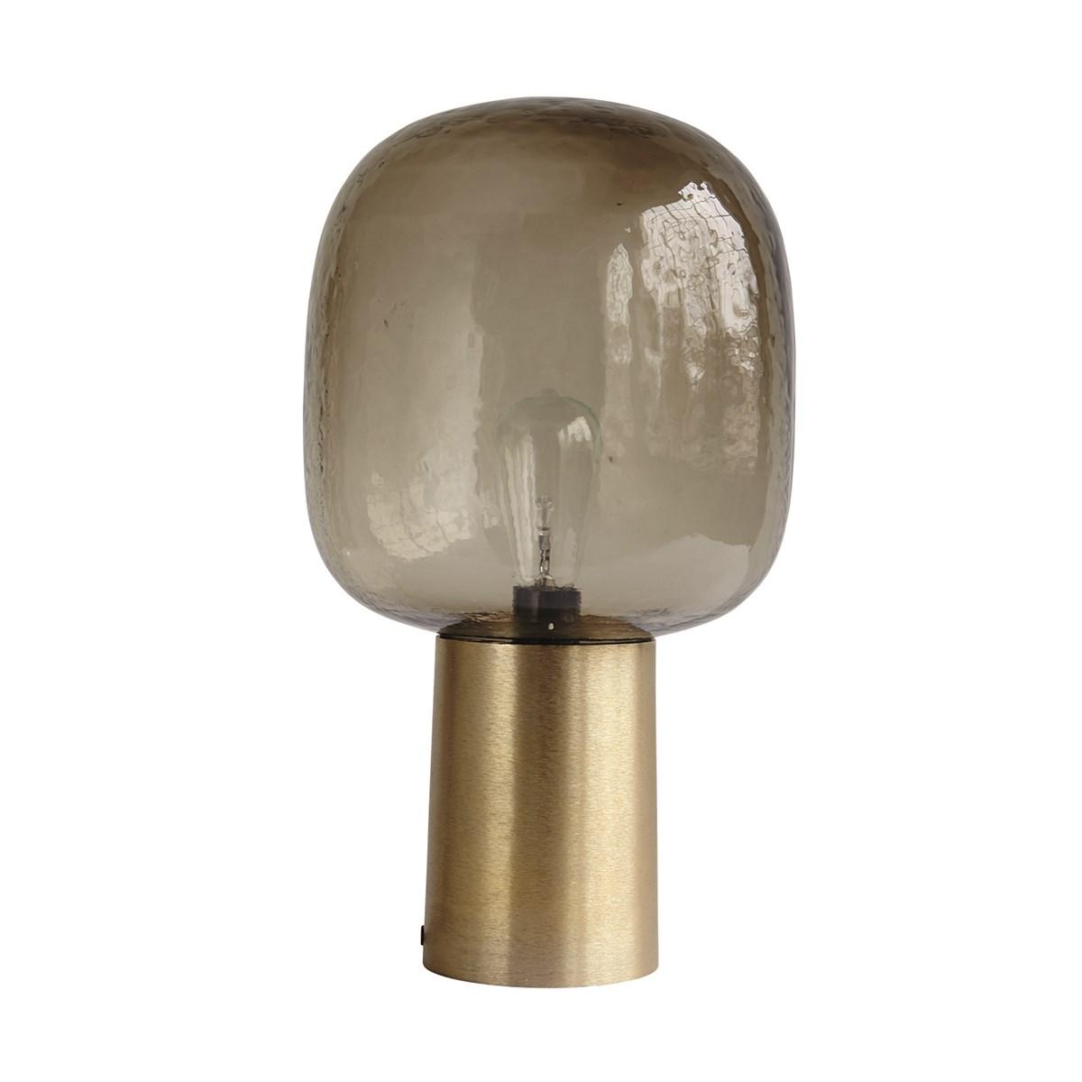 Skulpturell bordlampe fra House Doctor. Laget av messingfarget aluminium og kuppel i farget glass.