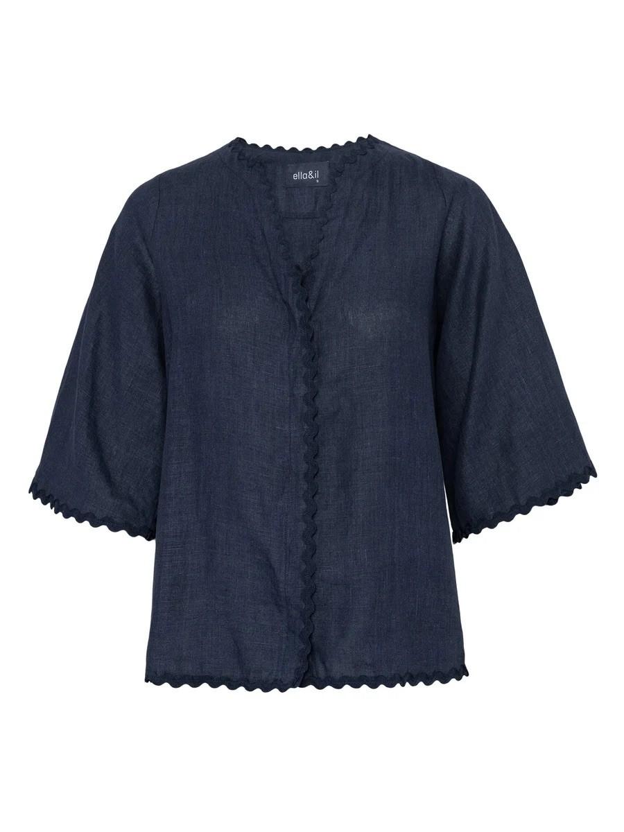 Bluse fra Ella & Il. Kommer med v-hals og korte ermer. Har en avslappet passform og bølgekant. Laget i lin. Perfekt på varme dager. Styles til et par shorts eller jeans.