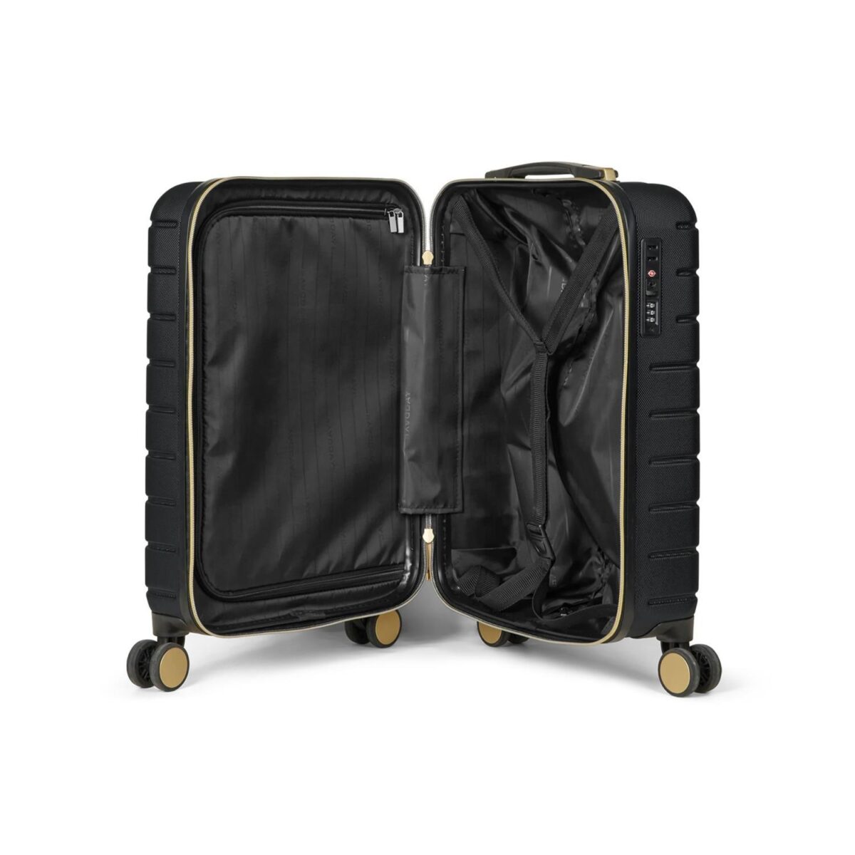 Denne kofferten kombinerer praktisk og funksjonalitet i et stilig og luksuriøst design med gulldetaljer. Den er lett å ta med på farten med sine 4 doble hjul som kan rotere 360 ??grader. Kofferten har plass til alt du trenger på reisen og den er utstyrt med en pakkerem og et glidelåsrom slik at du enkelt kan skille og organisere eiendelene dine. Den kan romme 36 liter, og den er designet i et lett hardcase-materiale. Den er også utstyrt med en TSA-godkjent lås, som vil gi deg den ekstra tryggheten når du er på farten.
