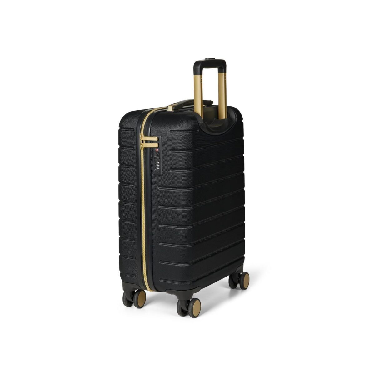 Denne vakre kofferten kombinerer praktisk og funksjonalitet med et stilig og luksuriøst design med gulldetaljer. Den er lett å transportere med sine fire doble hjul som kan rotere 360 ??grader. Innvendig har kofferten et rom med glidelås og en pakkerem som kan holde klærne på plass. Kofferten er laget av et lett hardcase-materiale og rommer 65 liter. Låsen er TSA-godkjent og sikrer at du kan reise trygt med alle dine verdisaker.