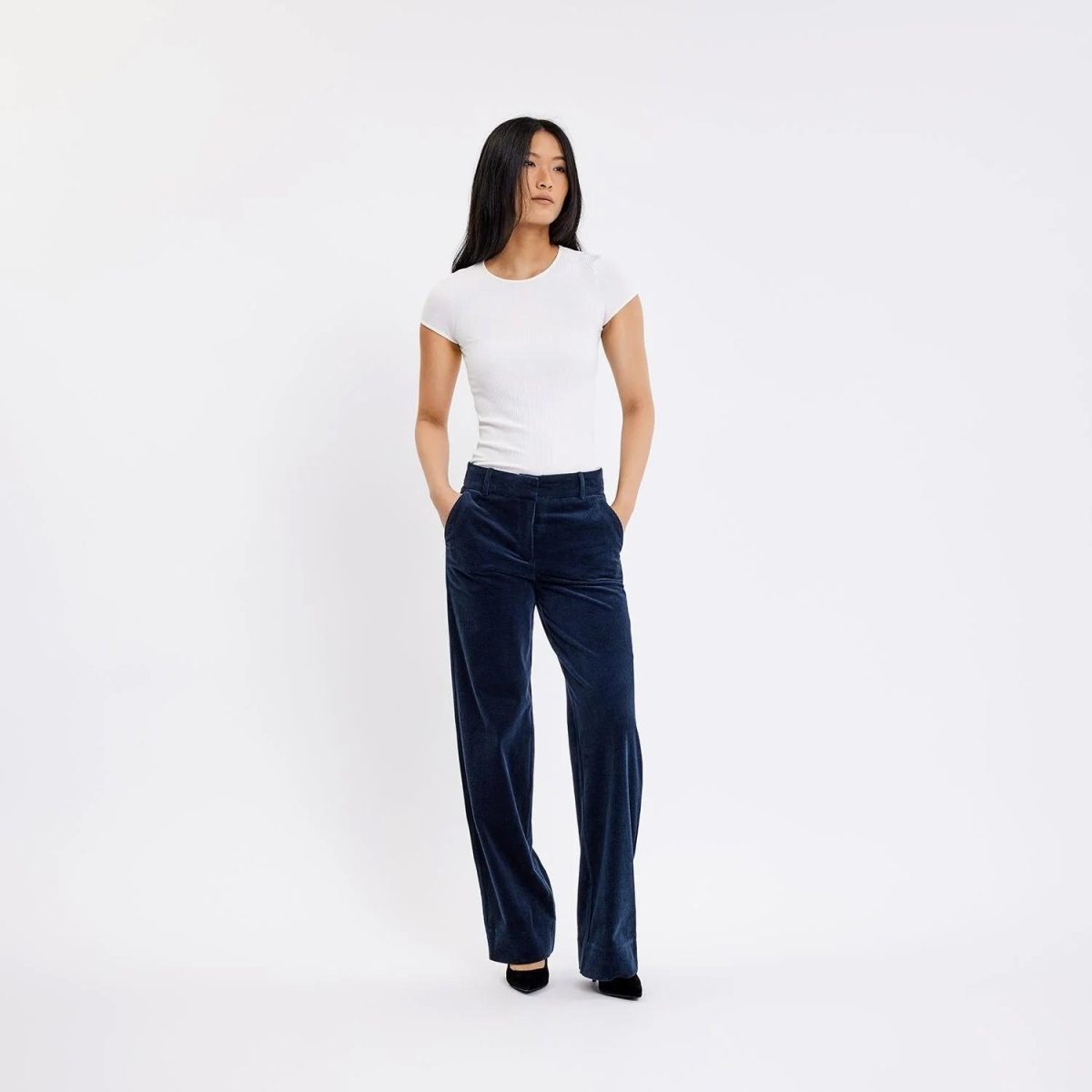 Stiligste buksa i høst… Dressbukse i cordfløyel. Wide leg i nydelig mørk blå farge.
