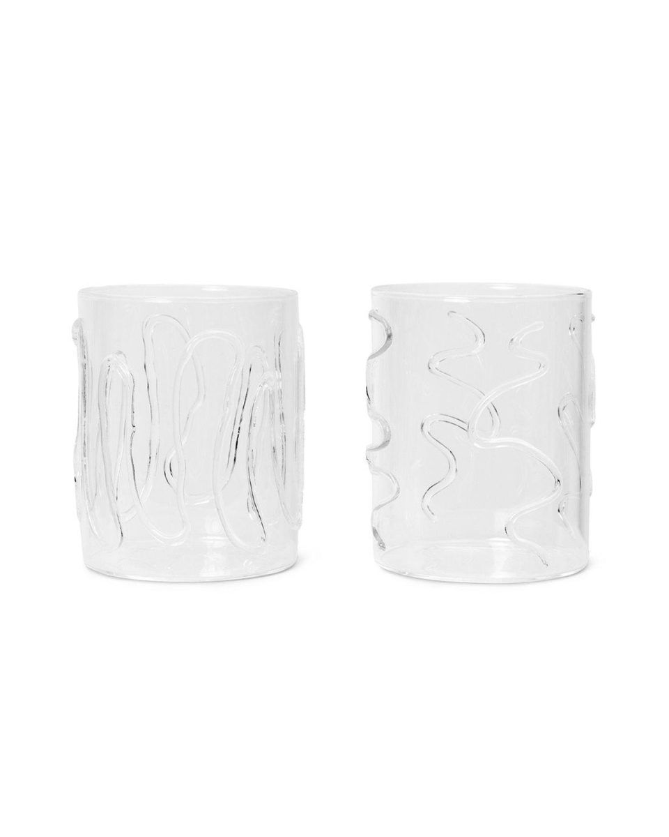 Med hvert glass med et annet, unikt mønster, utgjør Doodle-glassene et kunstferdig tillegg til enhver glasssamling. Laget utelukkende av slitesterkt borosilikatglass, er de karakteristiske, bølgete mønstrene laget av en erfaren glassmester ved hjelp av en lommelykt, og sikrer at ikke to deler er identiske. Det klare glasset gir Doodle-glassene et rent, moderne utseende, mens de bølgete designene gir dem et særegent, lunefullt uttrykk. Settet med to er pakket i en nydelig, gjenbrukbar treboks, noe som gjør den ideell som gave.
