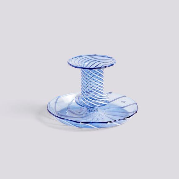 Flare glass lysestake fra Hay, blå med hvite striper.