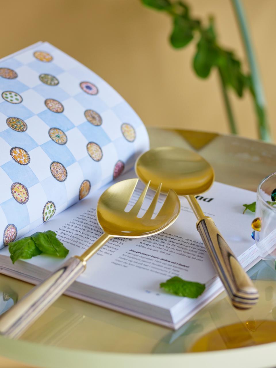 Fumio salatsett gir et snev av luksus til salatskålen din. Dette settet er laget med en glanset gullfinish, og kombinerer praktisk bruk med vakkert design. Salatsettet fungerer som et funksjonelt og elegant tilbehør til hverdagsmat så vel som til festlige anledninger.