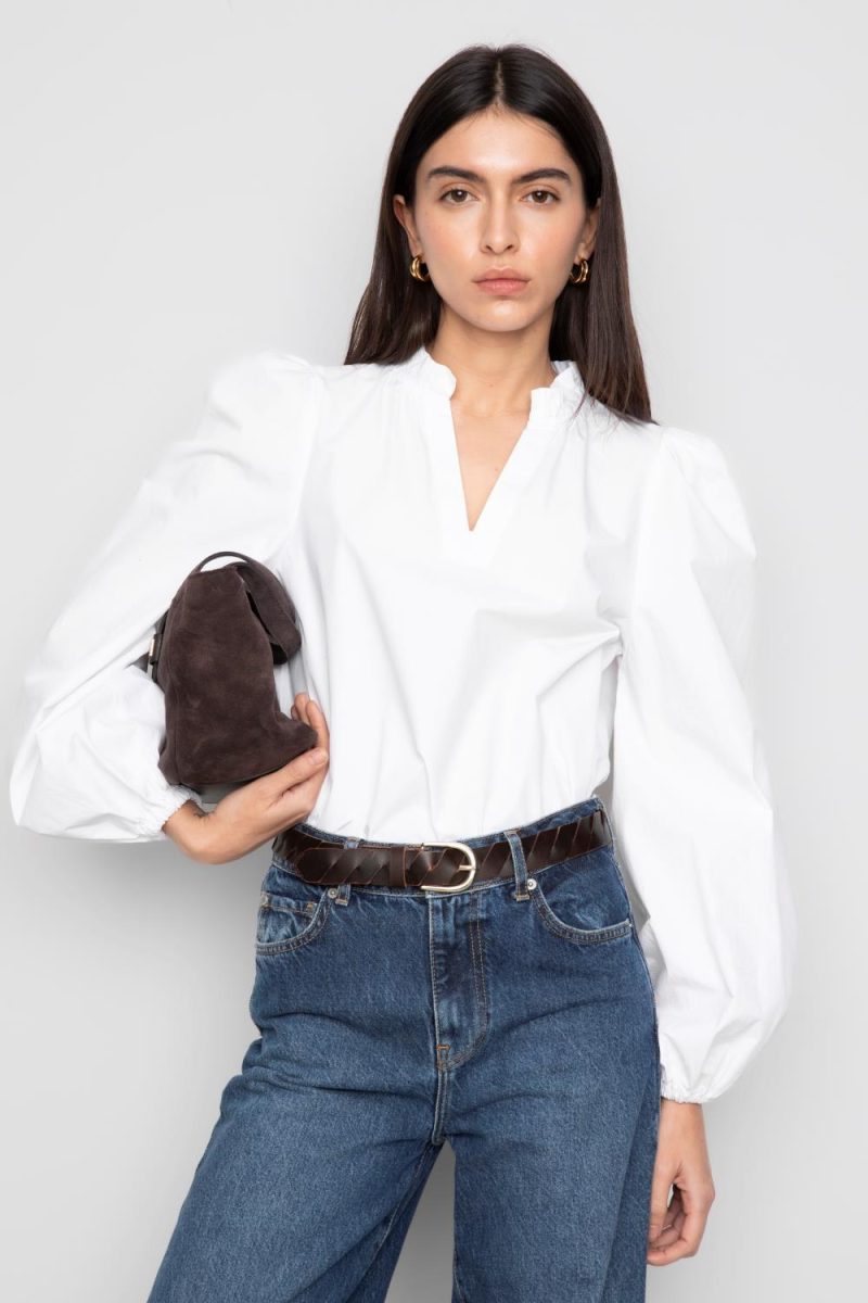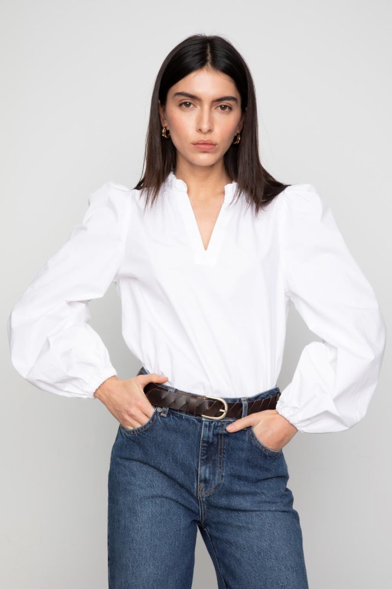 Camilla Pihls signaturbluse Infinity er den perfekte hverdagsblusen laget av 100 % økologisk bomull. Denne klassiske blusen er designet med voluminøse lange ermer og en flagrende kropp.
