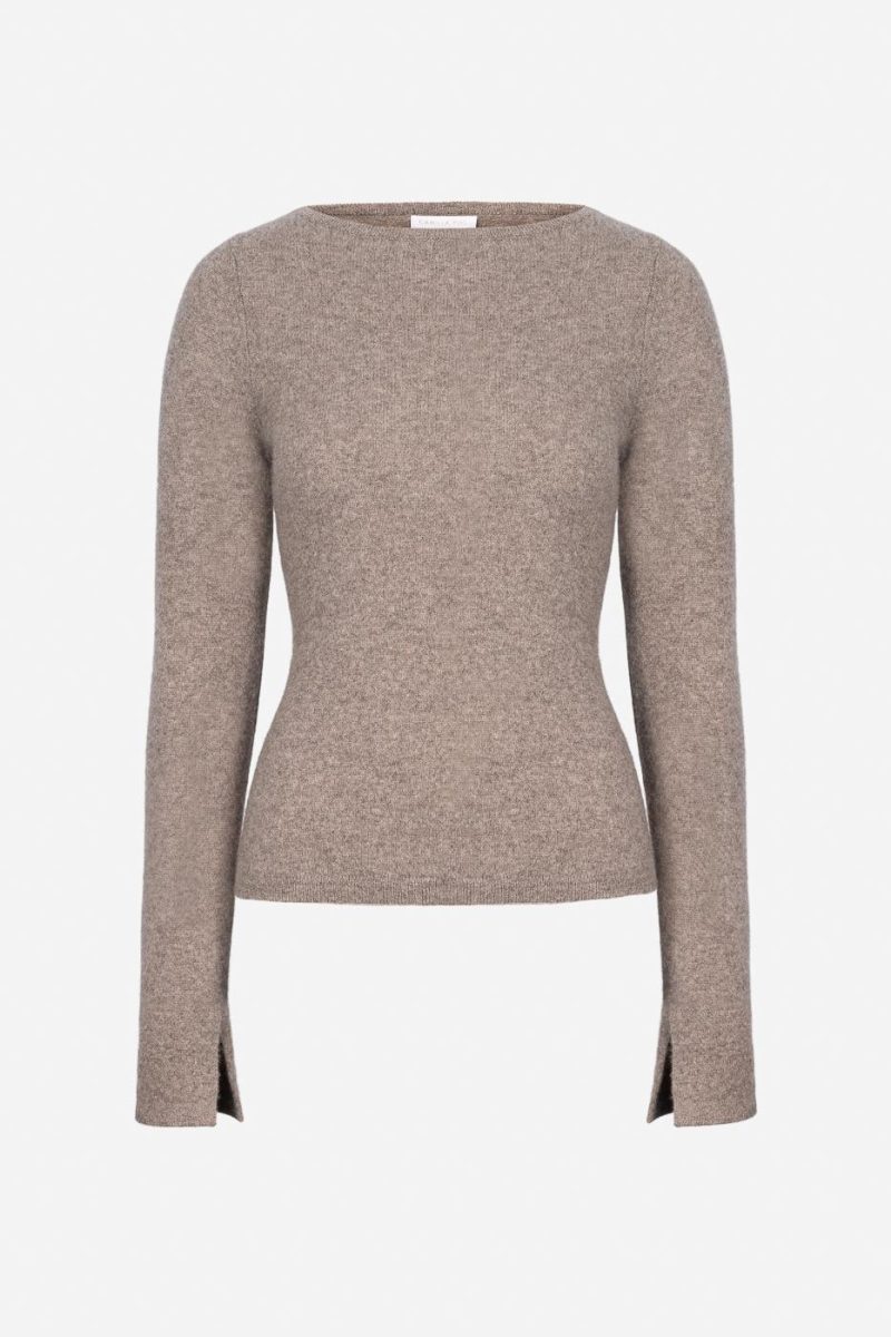 Superfin, feminin genser i en myk kvalitet. Genseren har rund hals ,lange ermer og ribbestrikket kant i nakken. Litt innsvingt i midjen.