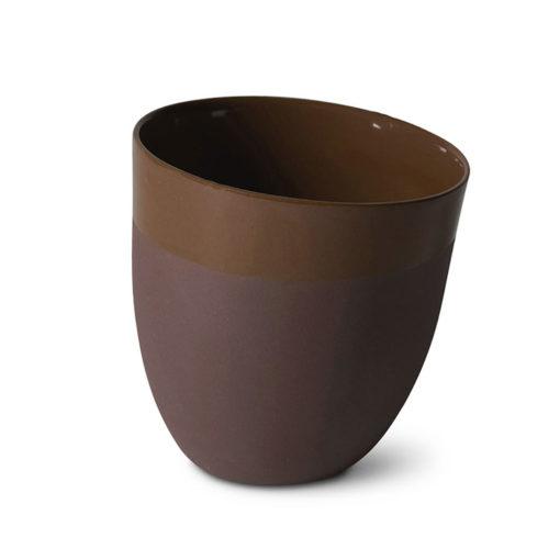 Håndlaget kopp i gjennomfarget porselen som ligger godt i hånden og har en behagelig, fløyelsmyk overflate. Glasert med transparent glasur inni og rundt kanten du drikker av.