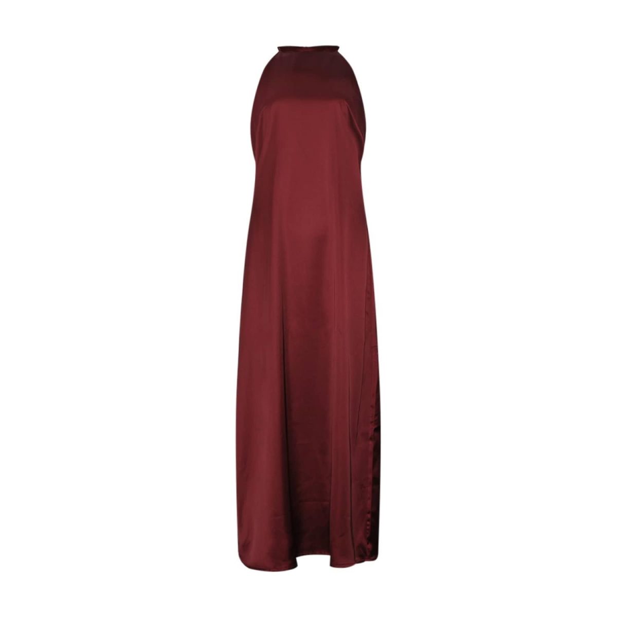 Lang kjole i glatt sateng med smale stropper. Kjolen lukkes med glidelås.