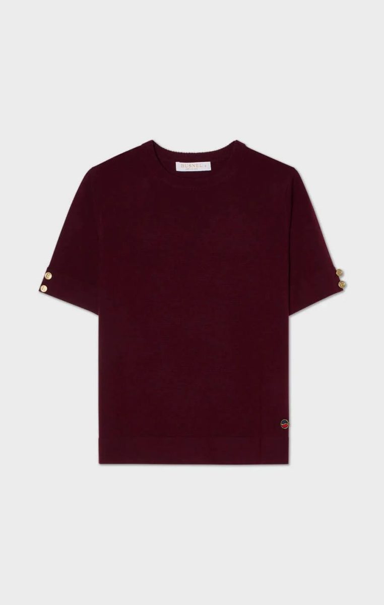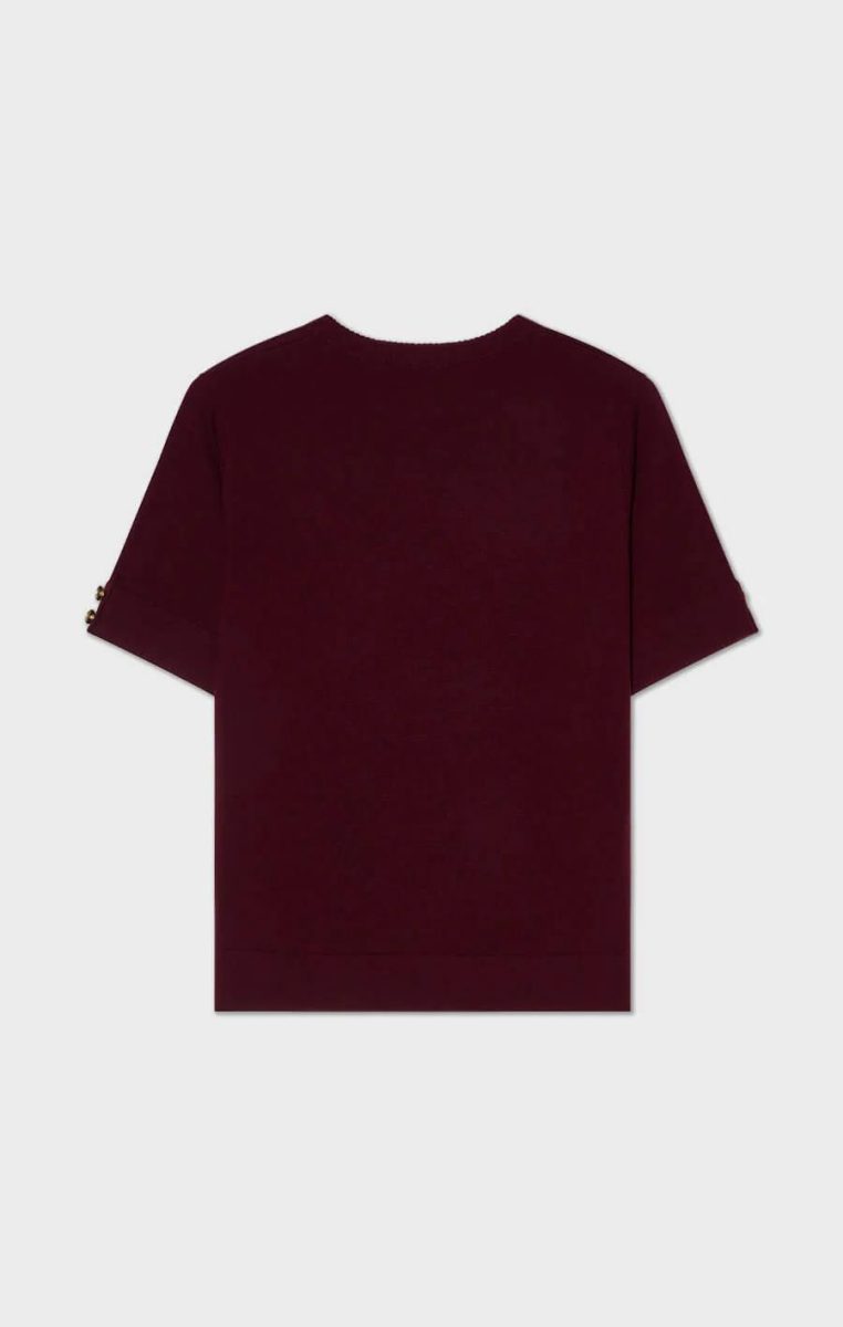 Lucca Top er en strikket kortermet topp i supermyk merinoull. Den har en klassisk rund hals, designet med en klassisk passform. Merinoullstoffet gir god komfort mot huden. For å gjøre den litt mer spesiell, er toppen dekorert med to gullfargede B-knapper på ermene.
