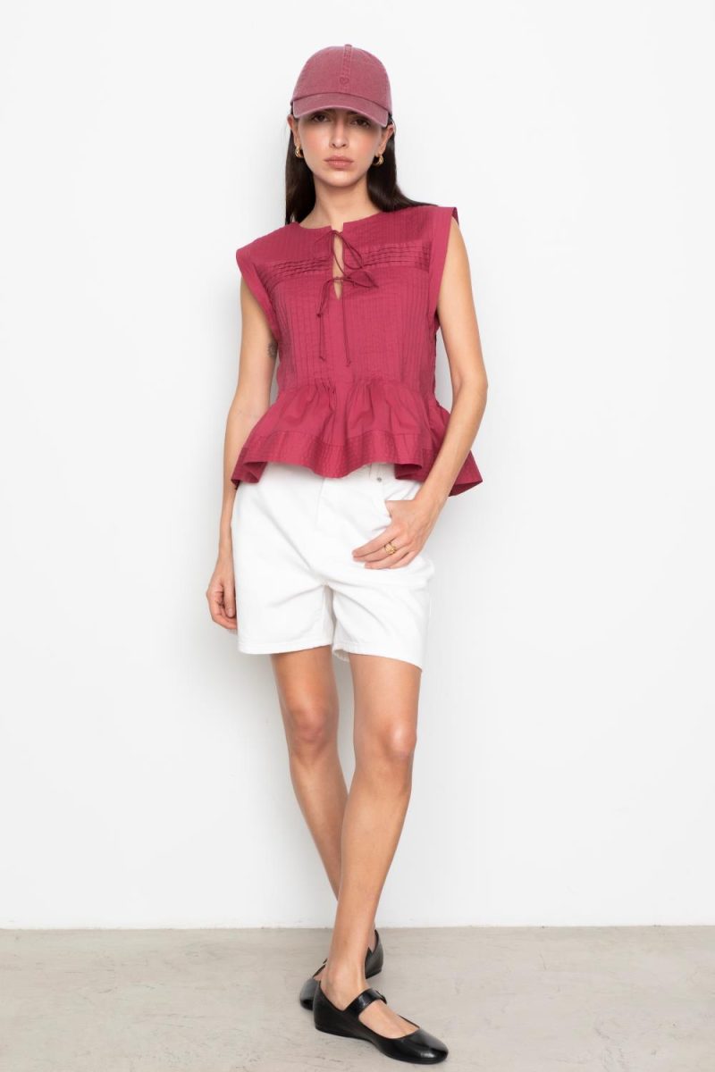 Mavie Top fra Camilla Pihl er en feminin og stilren topp som passer perfekt til vår- og sommergarderoben. Den kommer i den vakre fargen Berry, som gir et friskt og elegant uttrykk. Toppen er ermeløs og designet med fine leggdetaljer foran og bak, som skaper en flatterende fasong. Den har en avslappet passform og lukkes med snøring i front, et delikat og tidløst plagg som enkelt kan styles både til hverdag og fest.