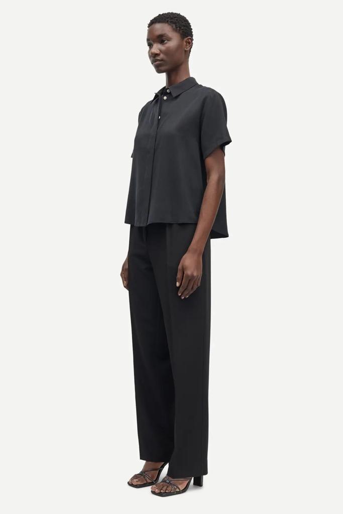 Kortermet skjorte med løs passform og senkede skuldre fra Samsøe Samsøe. Usynlig knappelukking foran. Halssøm med plisserte detaljer. Hovedmateriale laget av 100 % TENCEL™ Lyocell. Dette produktet inneholder TENCEL™ Lyocell, en fiber med lav slagstyrke som kommer fra ansvarlig forvaltede trekilder.