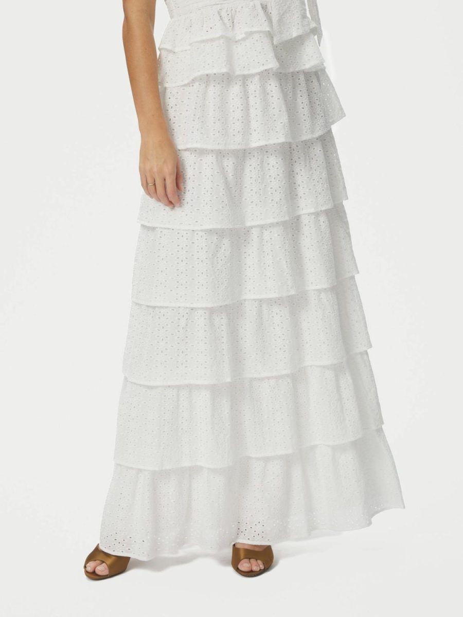 Morris Emb Skirt Off White fra Neo Noir er et vakkert og feminint valg for enhver garderobe. Dette fantastiske skjørtet i fargen Off White kommer i en brodert kvalitet som gir et sofistikert og luftig uttrykk. Med sin elegante lengde og delikate detaljer passer det like godt til hverdagsbruk som til sommerens fester eller en avslappende ferie. Kombiner Morris Emb Skirt Off White med en enkel topp eller en matchende bluse for en gjennomført stil. Modellen på bildet er 176 cm høy og har på seg størrelse 36, noe som viser den flatterende passformen.