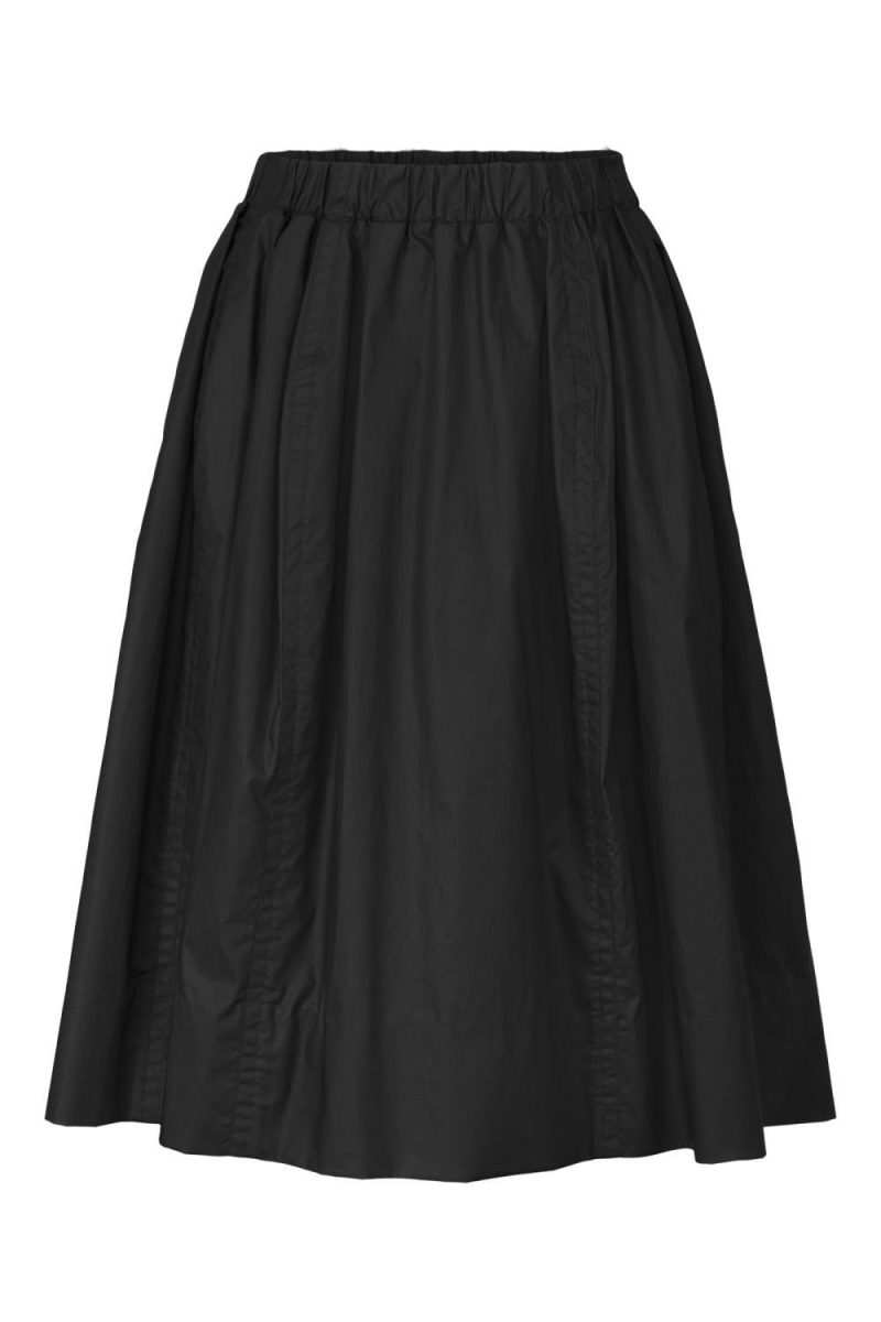 Knelangt skjort med elastisk liv laget i bomullspoplin. Skjørtet har paneler, lommer i siden og usynlig oppbrett.