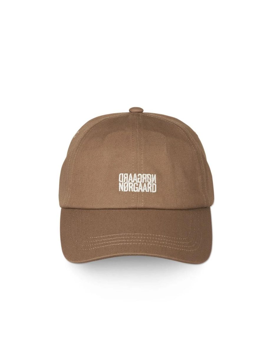 Recy Twill Callie Cap har en fin brodert logo foran. Formen er rund og sitter tett inntil hodet. Skyggen er lang og hetten har luftehull, synlig søm, spenne bak og knapp øverst.