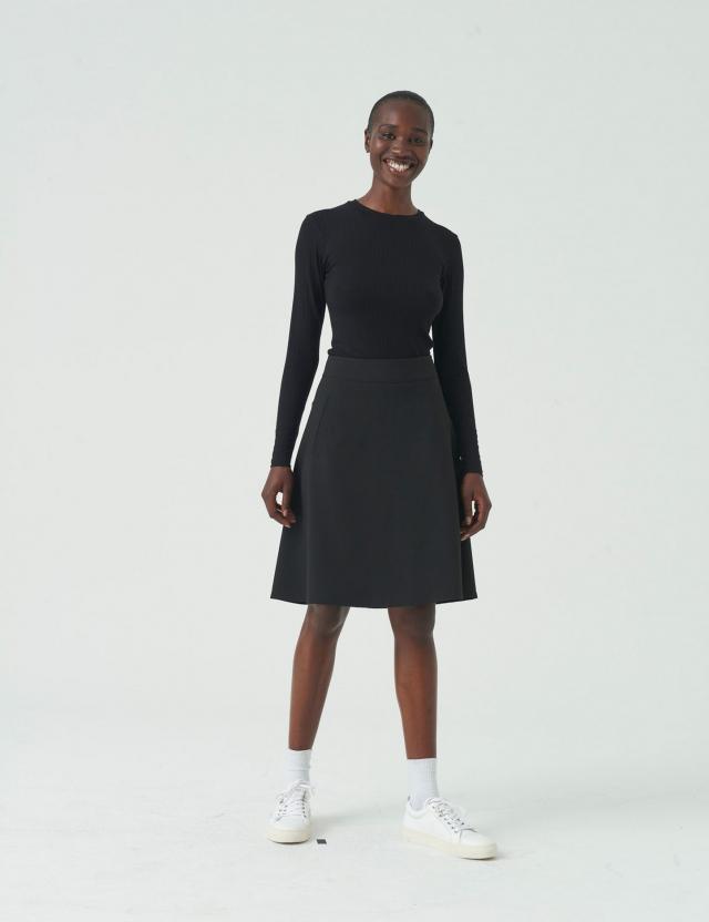 Recycled Sportina Stelly Skirt fra Mads Nørgaard har den klasssiske Stelly-passformen med a-fasong som sitter pent i midjen. Stelly Stretch har glidelås bak og lommer på hver side i front. Skjørtet er gjenganger i Mads Nørgaard sine kolleksjoner og fungerer uavhenbgig av sesong eller trendbildet.