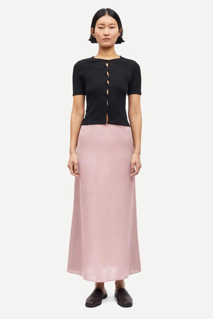 Samsøe samsøe Saagneta Long Skirt 12956 Saagneta Long Skirt 12956 fra Samsøe & Samsøe er et elegant skjørt i lin som kan brukes både til hverdag og fest. Skjørtet har midi-lengde, slank fasong og en elastisk midje som gir en fleksibel og behagelig passform. Lukkes med skjult glidelås på siden.
