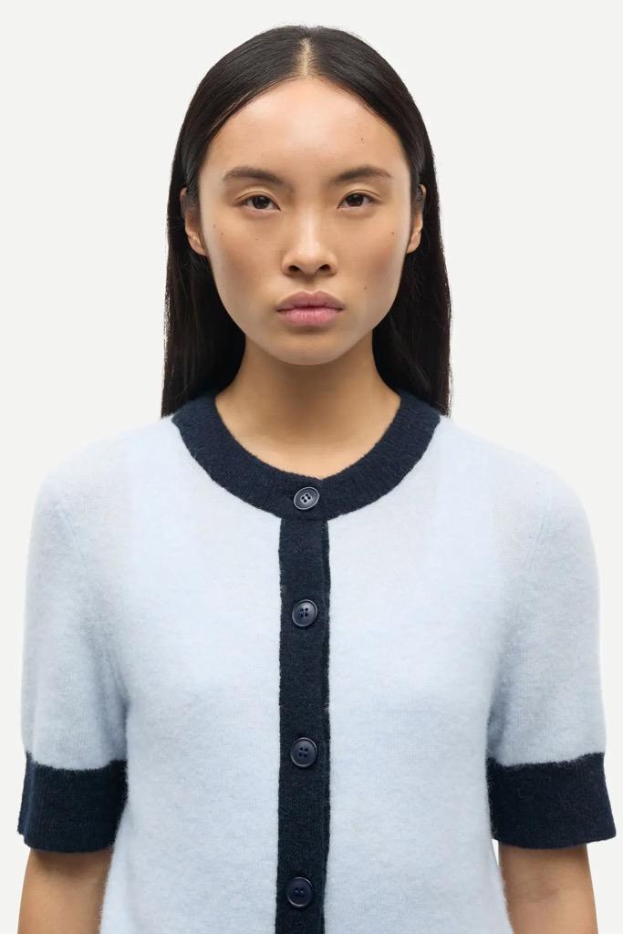 Sanoura SS Cardigan fra Samsøe & Samsøe. Klassisk cardigan med korte ermer som er et must have i garderoben. Cardiganen er laget av deilig ullmiks og kommer i rosa farge. Den har rund hals, avslappet passform og lukkes med knapper foran.