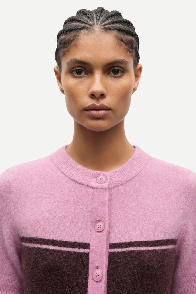 Sanoura SS Cardigan fra Samsøe & Samsøe. Klassisk cardigan med korte ermer som er et must have i garderoben. Cardiganen er laget av deilig ullmiks og kommer i rosa farge. Den har rund hals, avslappet passform og lukkes med knapper foran.