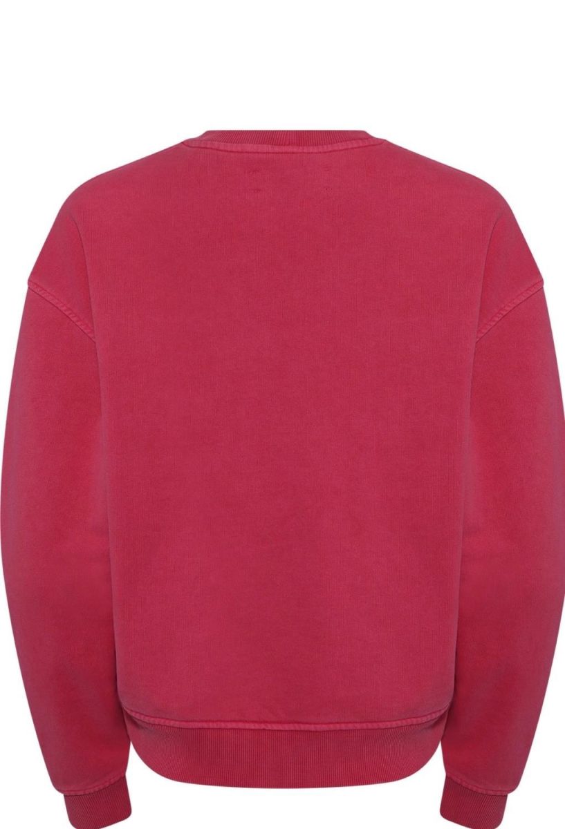Savan Sweat fra Samsøe Samsøe er en klassisk collegegenser som kombinerer tidløs komfort med et moderne uttrykk. Genseren er fremstilt i myk, 100% økologisk bomull og har en avslappet passform med senkede skuldre som gir et laidback utseende. Den dype rosafargen har en pigmentfarget finish, noe som gir stoffet en levende og lett vintage-inspirert overflate. Med ribbestrikkede kanter i hals, ermer og fald, samt en diskré brodert logo på mansjetten, er dette en kvalitetsgenser som passer like godt til jeans som over en kjole.