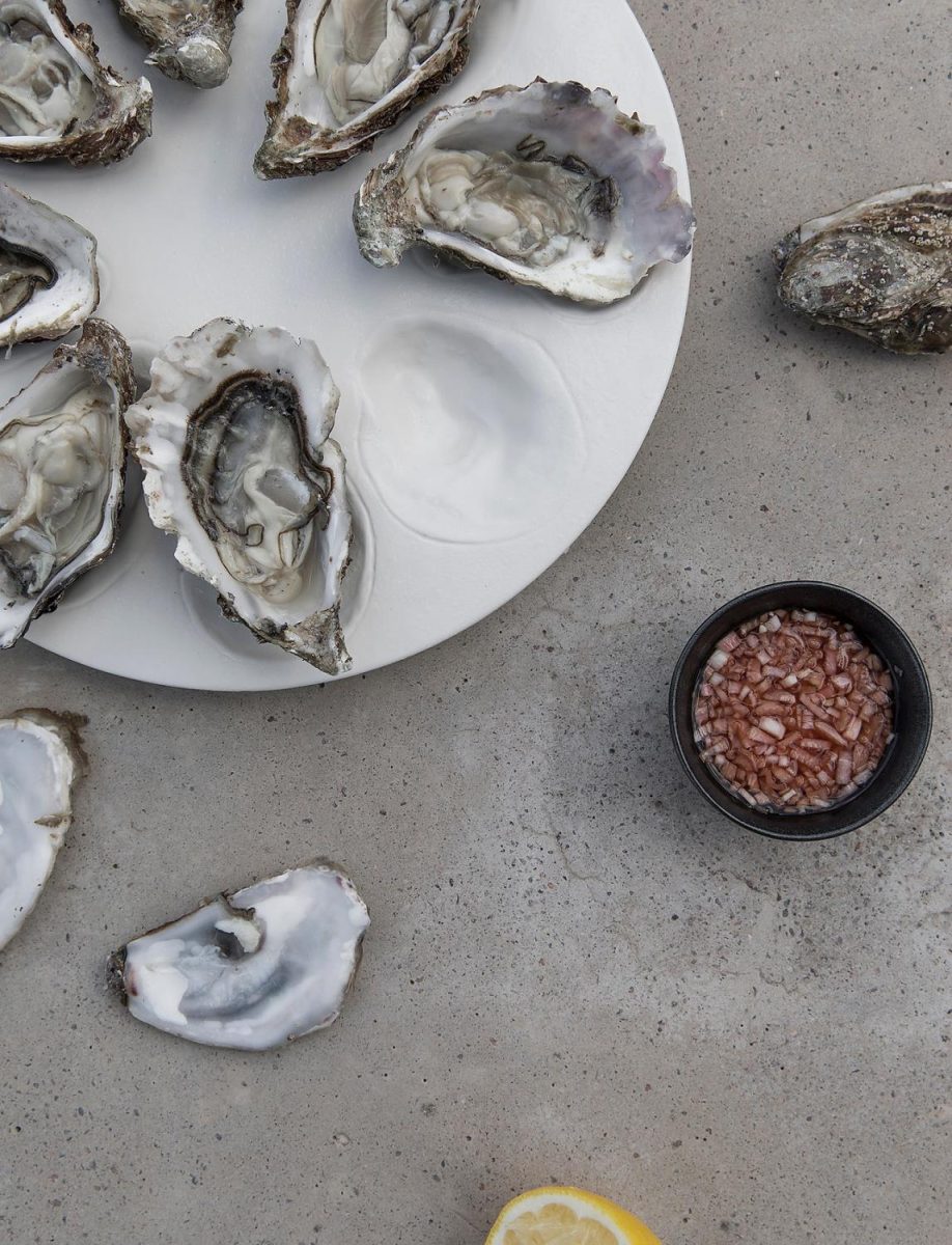 Oyster skulpturert tallerken fra Byon er et elegant serveringsfat for østers som med fordel kan kjøles ned i fryseren før servering slik at østersen holder seg frisk lenge.