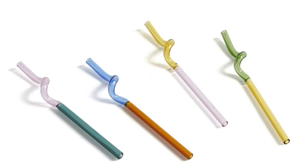 Lekre tofarget sugerør i glass til bruk i varme og kalde drikker.