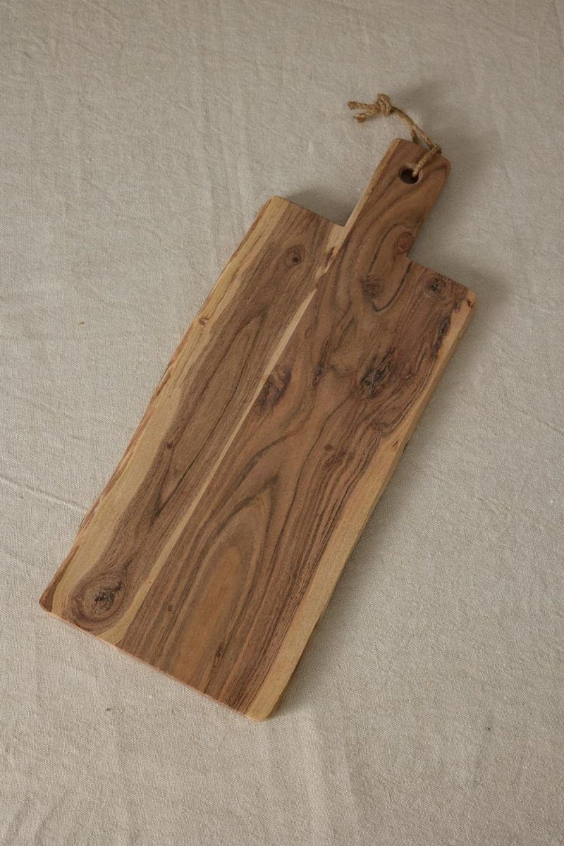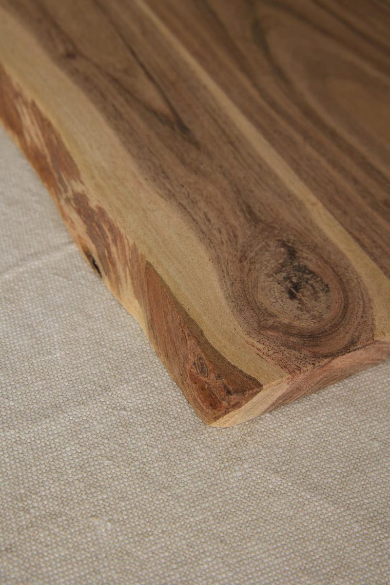 Skjærebrett i akasietre fra Bruka med et rustikt preg som fremhever treets naturlige mønstre. Det praktiske håndtaket og den solide utformingen gjør det ideelt til servering av brød, ost og småretter. En enkel jutesnor gir deg muligheten til å henge brettet opp som en dekorativ detalj på kjøkkenet når det ikke er i bruk. Perfekt både til hverdags og når du vil dekke bordet litt ekstra fint.