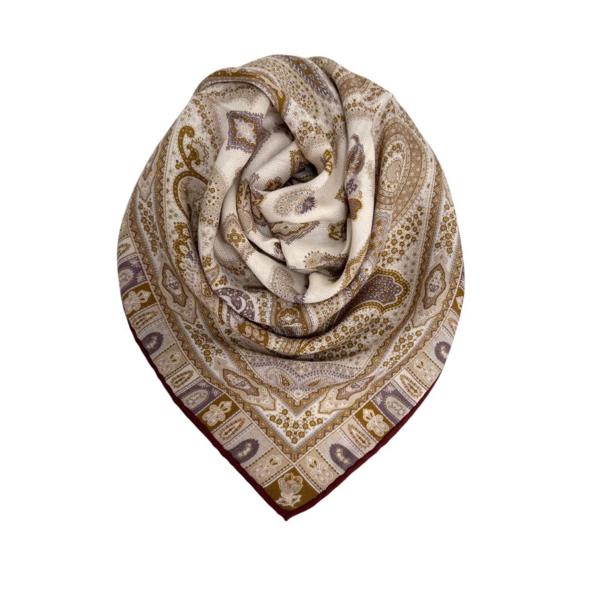 Skjerf m.håndsydde kanter ull/silke – creme/jeansblå/oransje