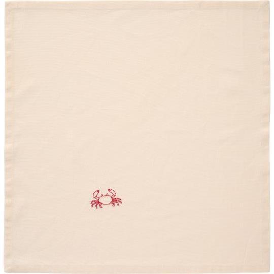 Vakker stoffserviett i den kjente smørkremnyansen med delikat krabbebroderi som tilfører et sjarmerende maritimt utseende. Bruk de fine broderte serviettene til å skape en estetisk og innbydende borddekking, perfekt for sommerlunsj eller temafester med maritimt tema.