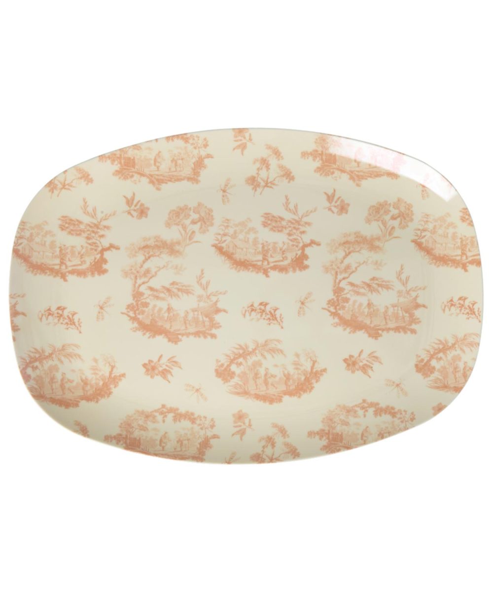 Vårt rektangulære fat i «Toile de rice»-mønster. Det er laget av melamin, som er slitesterkt og ideelt til daglig bruk på grunn av sin styrke og enkle rengjøring. Dette gjør fatet både praktisk og unikt!