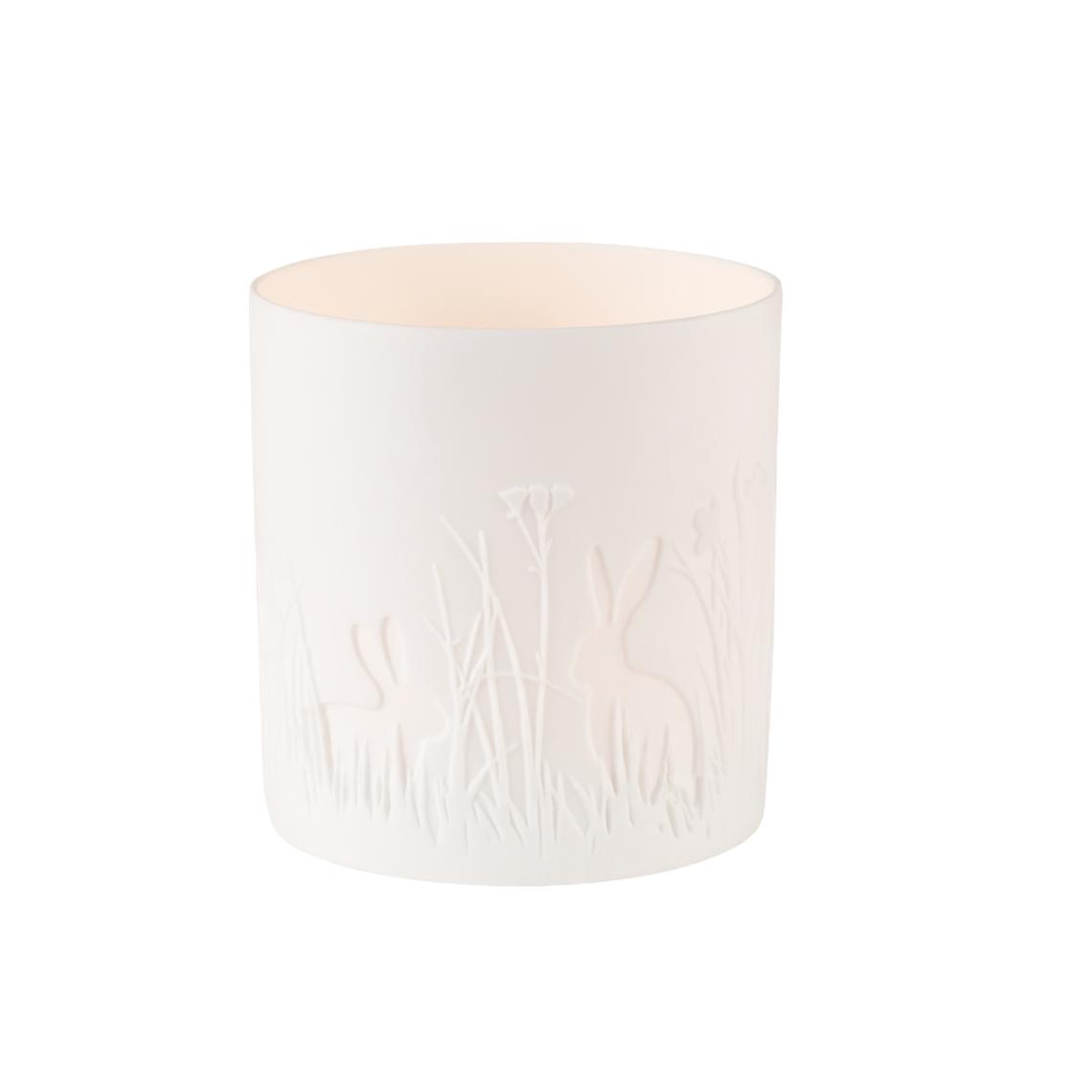 Telyseholder i porselen med mønster og harer.