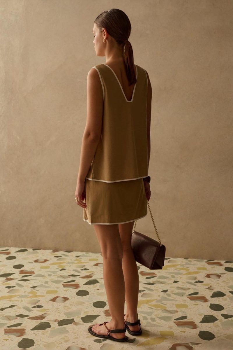 En lekker topp med V-hals og kontrastdetaljer som fremhever silhuetten. Style den som et matchende sett med våre matchende underdeler for et komplett utseende.