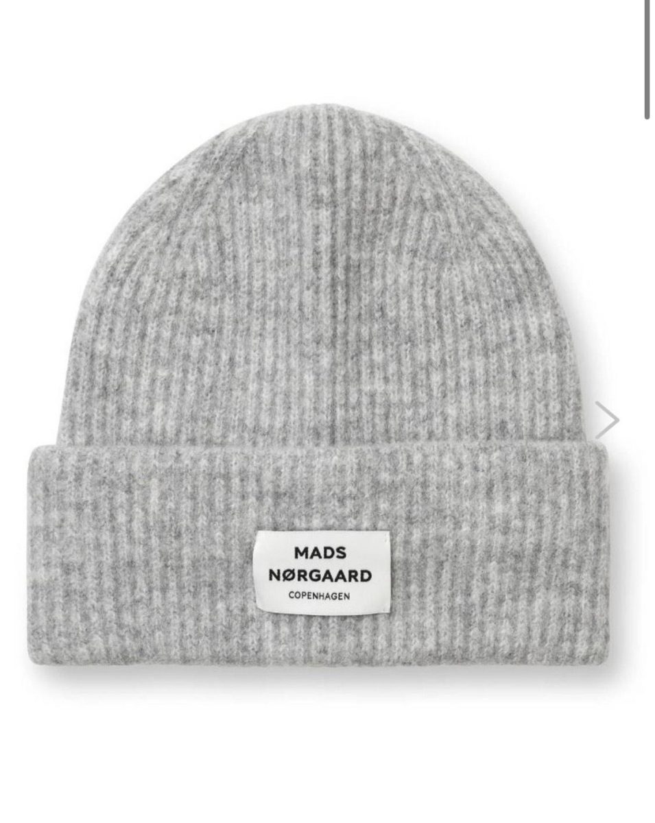 Nydelig lue fra Mads Nørgaard i en fin lys grå. Perfekt til høsten og vinteren! Den er laget av mykeste kvalitet og i ribbestrikk.