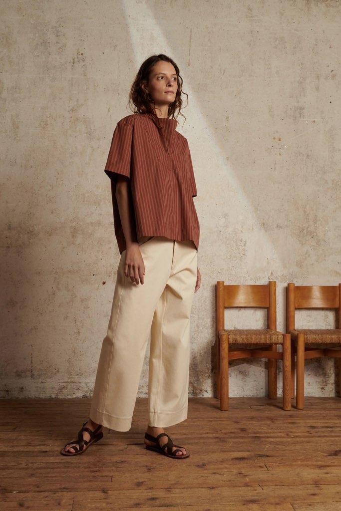 Poplinbluse i bomull med oransje og ecru striper