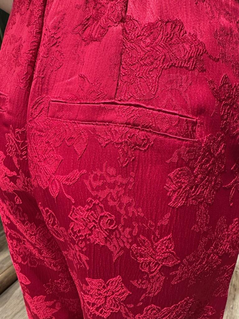 Lekker bukse fra YAS i rødt silkestoff med brokade mønster.