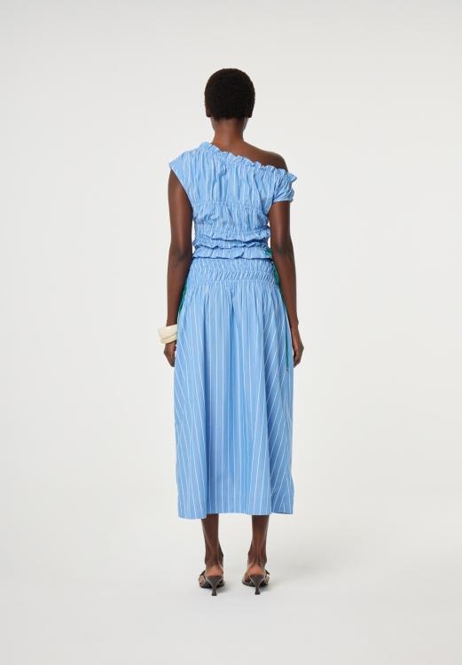 Stilig skjørt med striper og grønne knyttedetaljer i livet.