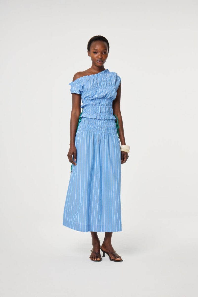Stilig skjørt med striper og grønne knyttedetaljer i livet.